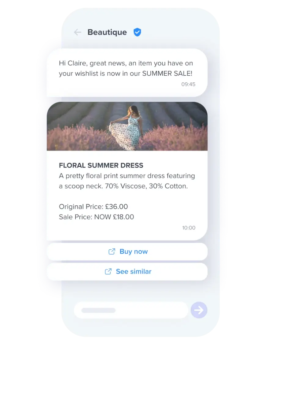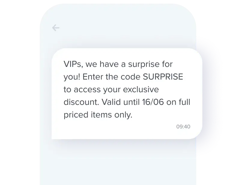 Impress customers with automated birthday messages, stock notifications, exclusive deals and VIP programmes that feed your bottom line. With Esendex, it’s easy to personalise messages and target specific groups of customers for hyper-relevance.