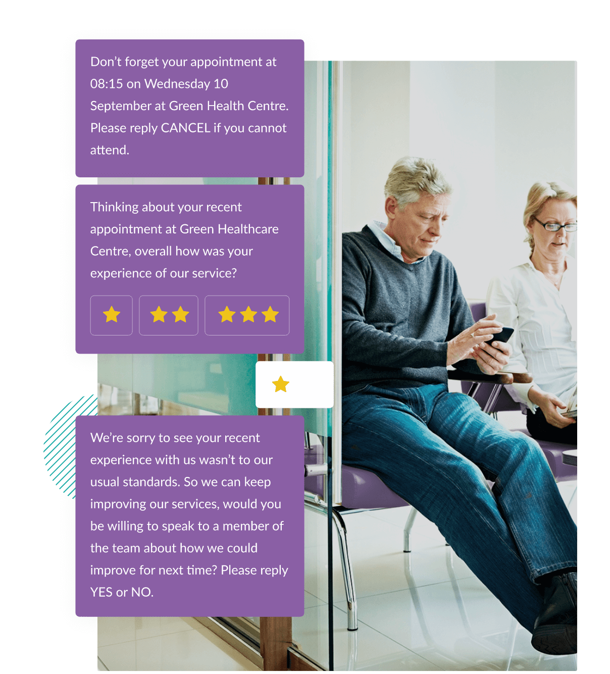 Empower patients with quick and secure SMS reminders that deliver critical information and reduce the risk of no-shows. Our SMS solutions for Healthcare can be used for appointment confirmations and appointment reminders, test results, and surveys – helping to improve patient experiences and outcomes.
