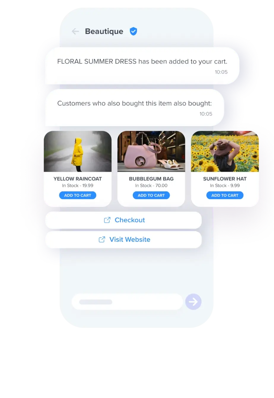 Retailers can send branded messages with images, product carousels, suggested replies and embedded links to create a more engaging experience.