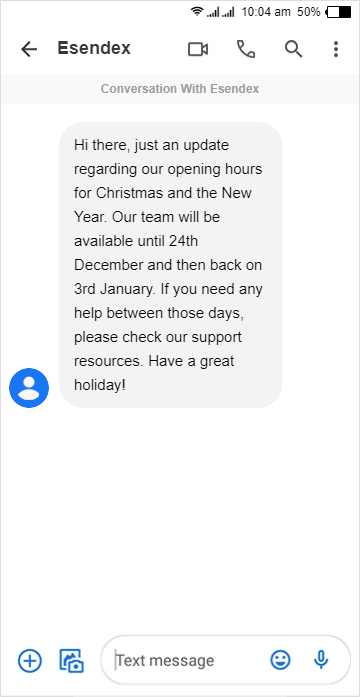 For example, if they’re opted in to receive SMS messages from you, send them a quick text that outlines when your team will be available. Not only is this a fast and easy way to inform customers of your holiday opening hours, but thanks to an open rate of up to 98%, it ensures your customers will most likely see the message.